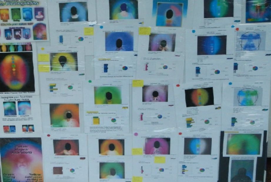 Guy Coggins, the inventor of biofeedback aura imaging, based his colour interpretations on different electrical measurements. Coggins conducted extensive research on these measurements and was further inspired by the writing of Dr. Max Luscher who has been responsible for many renowned scientific studies on colour preference and personality. Dr. Luscher was a contemporary of Sigmund Freud. Another, older form of photography that captures the emanations from living things, is KIRLIAN PHOTOGRAPHY. Seymion Kirlian was a Russian electronics engineer who in 1939 developed a means of capturing the electromagnetic emanations of the body on a photographic plate without the use of a camera. Experiments with Kirlian photography have led to a deeper understanding of energy in living things