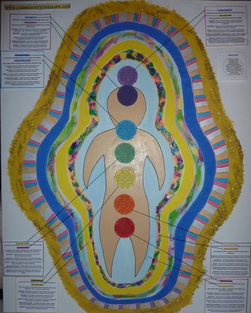The human aura is a field of energy surrounding the body. The energy centres known as chakras, are an integral part of the auric body. My diagram also shows rather than being a single energetic field around the body, the human aura consists of seven distinct layers.