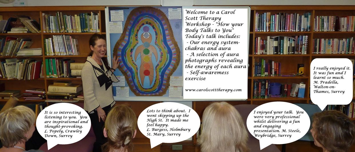 I should like to highly recommend Carol Scott as an Integrative Therapist and Aura Imaging Consultant. The clinic is very professional and welcoming. I found Carol’s room very pleasant and easy to relax in. I was amazed by the high red colours in my aura image and Carol’s analysis of what this meant was incredible and so accurate. My treatment continued with a quiz and my resulting answers and their meaning was ‘mind blowing’ and made me face certain facts.